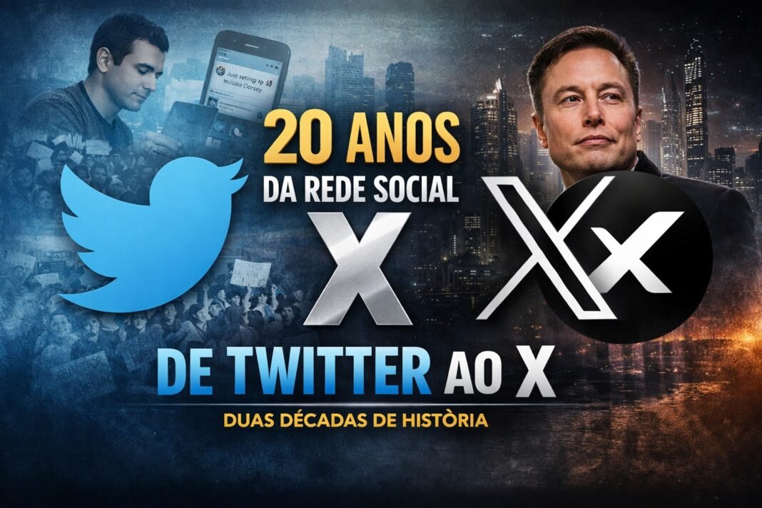 A rede social X (antigo Twitter) completou 20 anos de existência. No ar desde 21 de março de 2006, a data marca a primeira publicação de um tweet, feita pelo então CEO da empresa, Jack Dorsey.